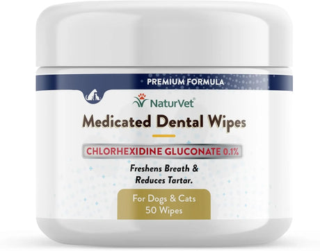 NaturVet Medicated Dental Wipes for Dogs & Cats 50 Toallitas