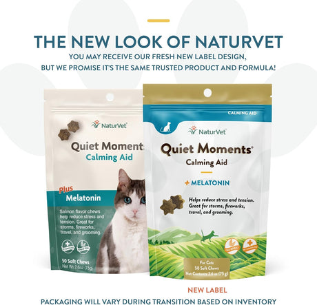 NaturVet Quiet Moments Calming Aid Cat Supplement Plus Melatonin 50 Masticables