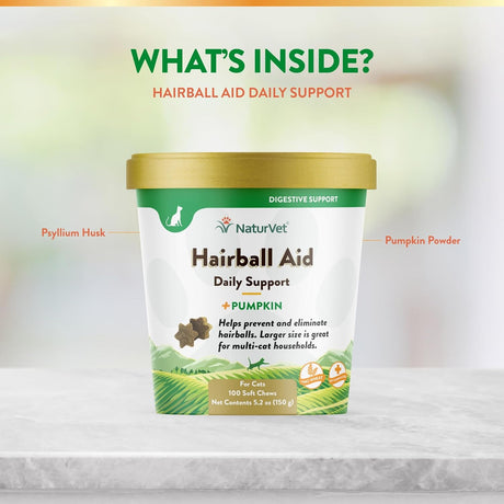 NaturVet Hairball Aid Supplement for Cats 100 Masticables