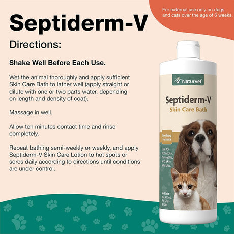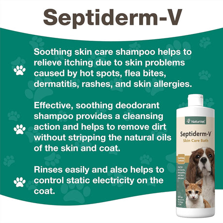 NaturVet Septiderm-V Skin Care Bath Wash for Dogs & Cats 473Ml.