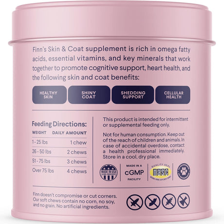 Finn Skin & Coat Salmon Oil Supplement for Dogs 90 Masticables