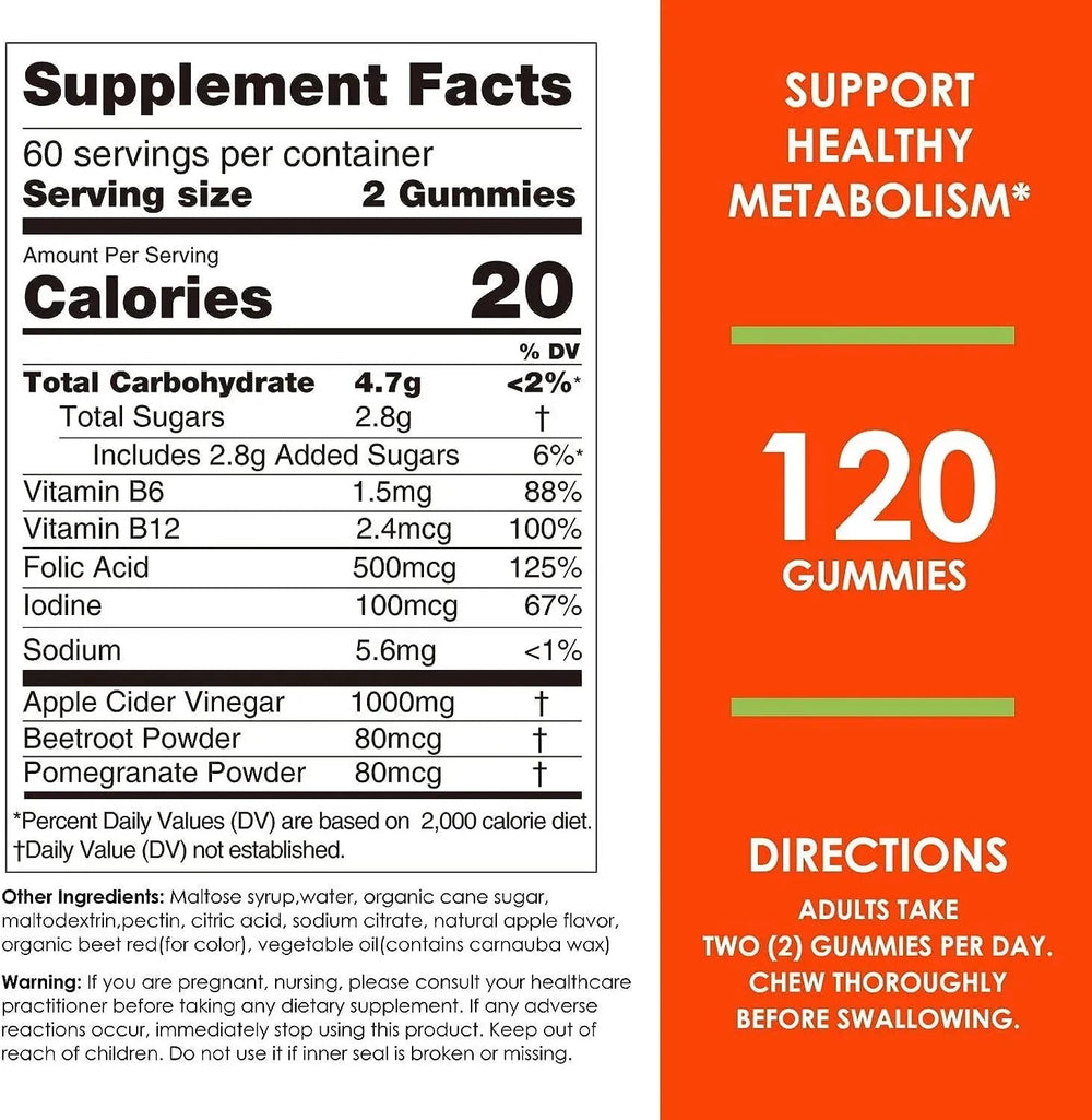 GRAN SABOR: nuestra gomita de vinagre de sidra de manzana tiene un sabor agridulce, que alivia el sabor del vinagre crudo y tiene el aroma dulce del jugo de manzana. ¡Disfruta de los beneficios del ACV, sin el desagradable sabor amargo!