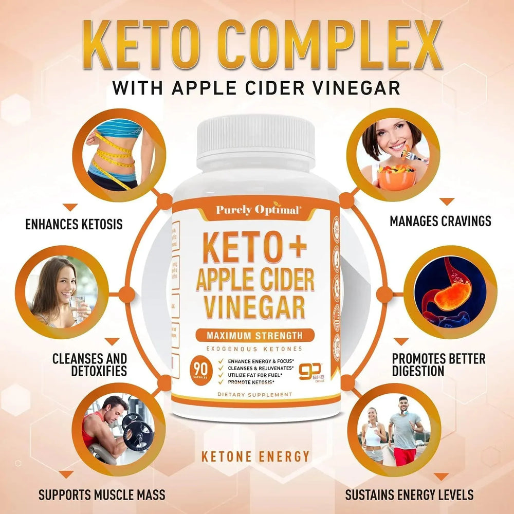 Purely Optimal Keto Pills + Apple Cider Vinegar 90 Capsulas