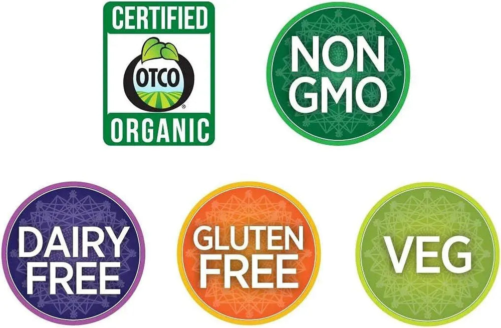 • elaborado con ingredientes orgánicos certificados; Sin OGM, vegetariano, sin gluten, sin lácteos.