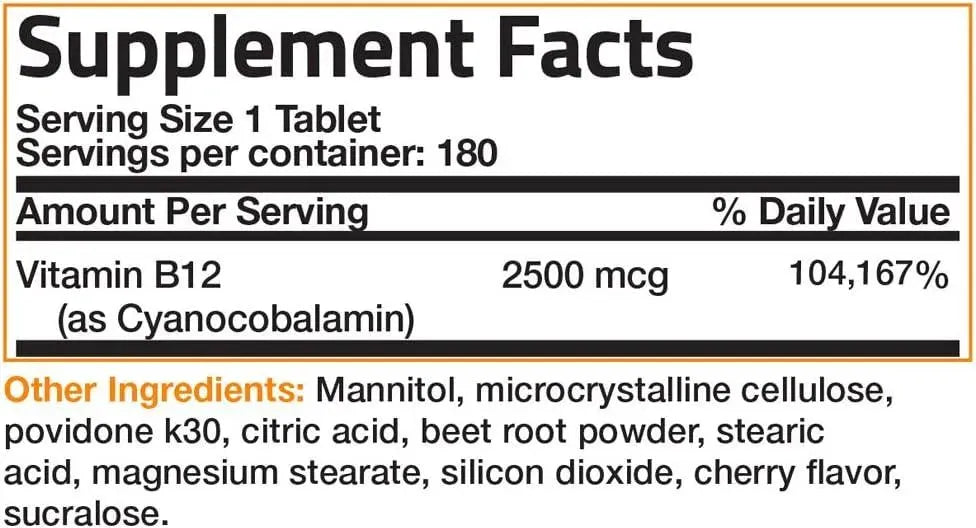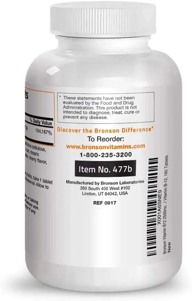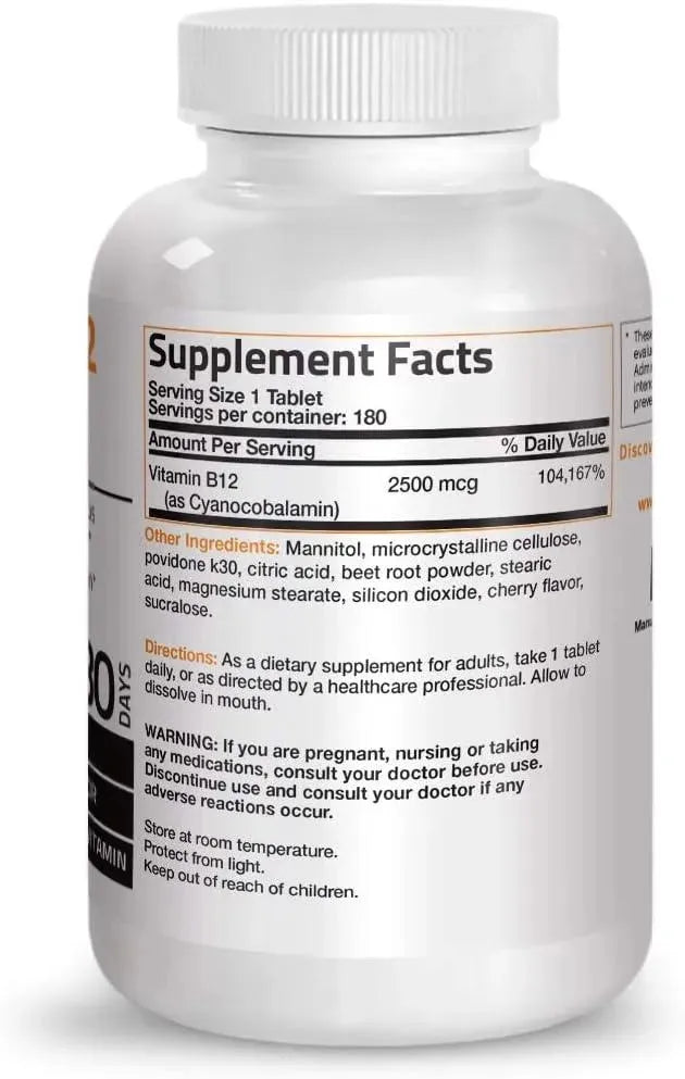 Bronson Vitamin B12 2500mcg Shot of Energy Fast Dissolve Chewable Tablets 180 Tabletas