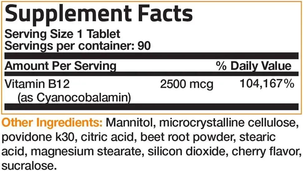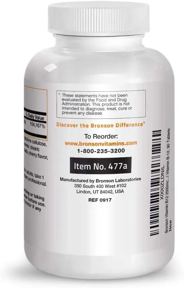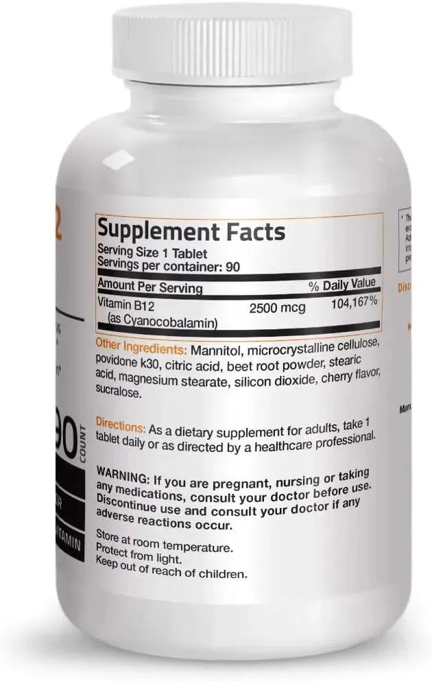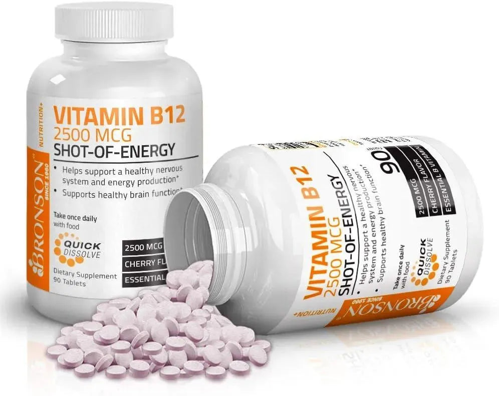 Bronson Vitamin B12 2500mcg Shot of Energy Fast Dissolve Chewable Tablets 90 Tabletas
