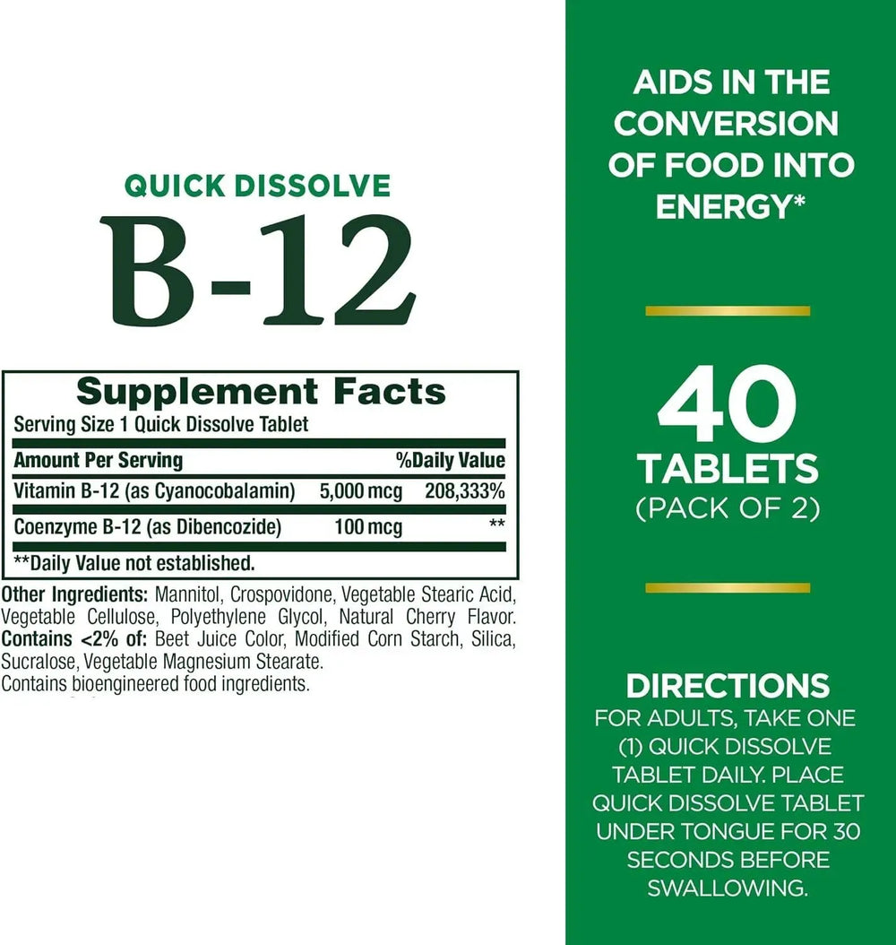 Nature's Bounty Vitamin B12 Quick Dissolve 40 Tabletas 2 Pack