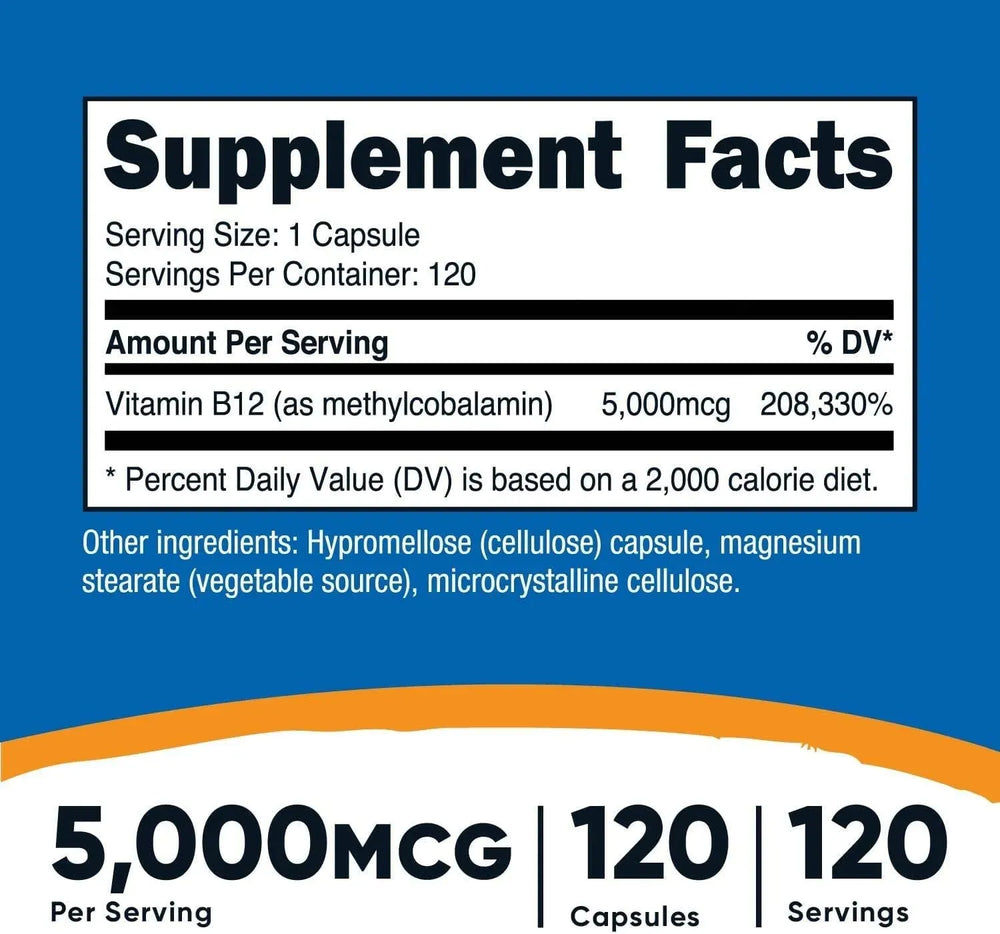 Nutricost Vitamin B12 5000mcg 120 Capsulas
