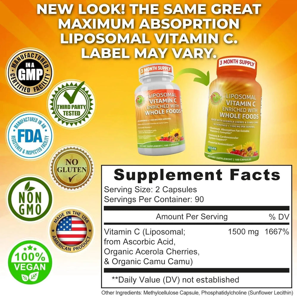 ¡FINALMENTE! UNA VITAMINA C LIPOSOMAL REAL Y DE ALTA POTENCIA QUE FUNCIONA: Nuestra poderosa fórmula de vitamina C liposomal (1500 mg por porción) está hecha con cerezas de acerola orgánicas y camu camu orgánico para un impulso adicional de vitamina C orgánica integral. Elaborado por nuestro equipo de expertos. nuestra fórmula contiene lecitina de girasol para mejorar la biodisponibilidad y absorción.