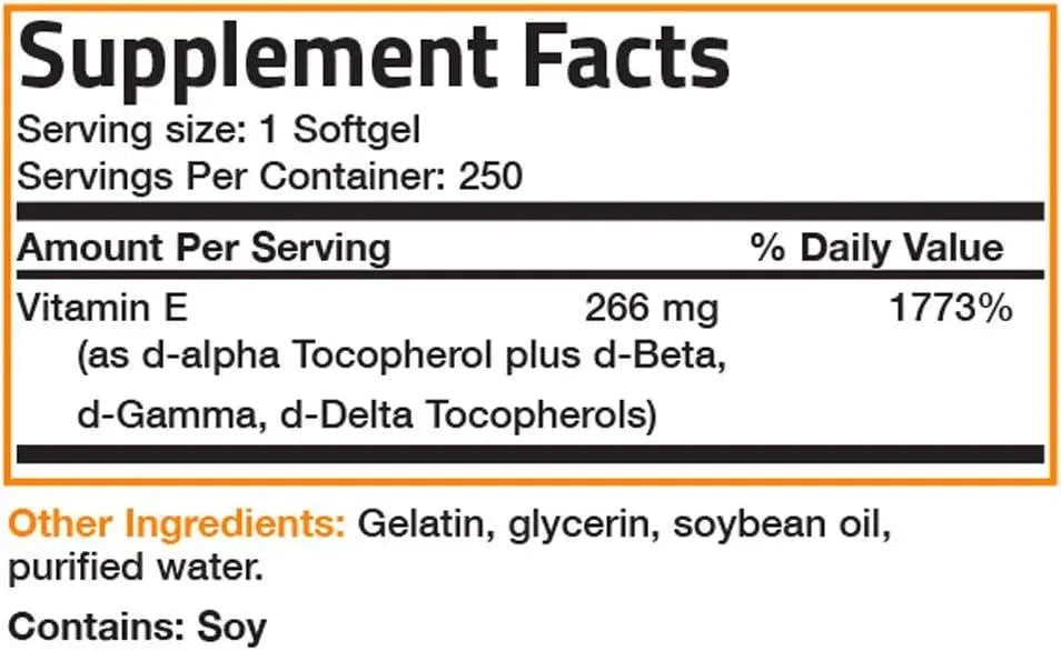 Bronson Natural Vitamin E Complex Supplement 400 I.U. 250 Capsulas Blandas