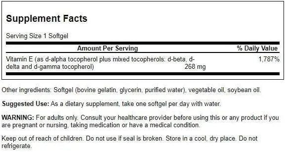 Swanson Vitamin E-400 Mixed Tocopherols 100 Capsulas Blandas