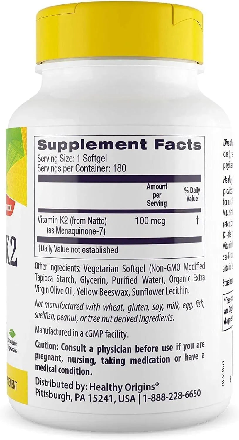 Healthy Origins Vitamin K2 as MK-7 100mcg 180 Capsulas Blandas
