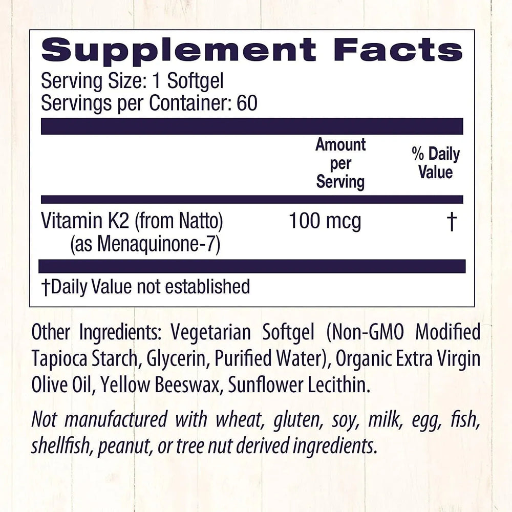 • Suplemento para la salud del corazón: nuestro suplemento de vitamina K2, hecho con aceite de oliva puro, puede apoyar la salud cardiovascular al ayudar a que el calcio no llegue a las arterias.