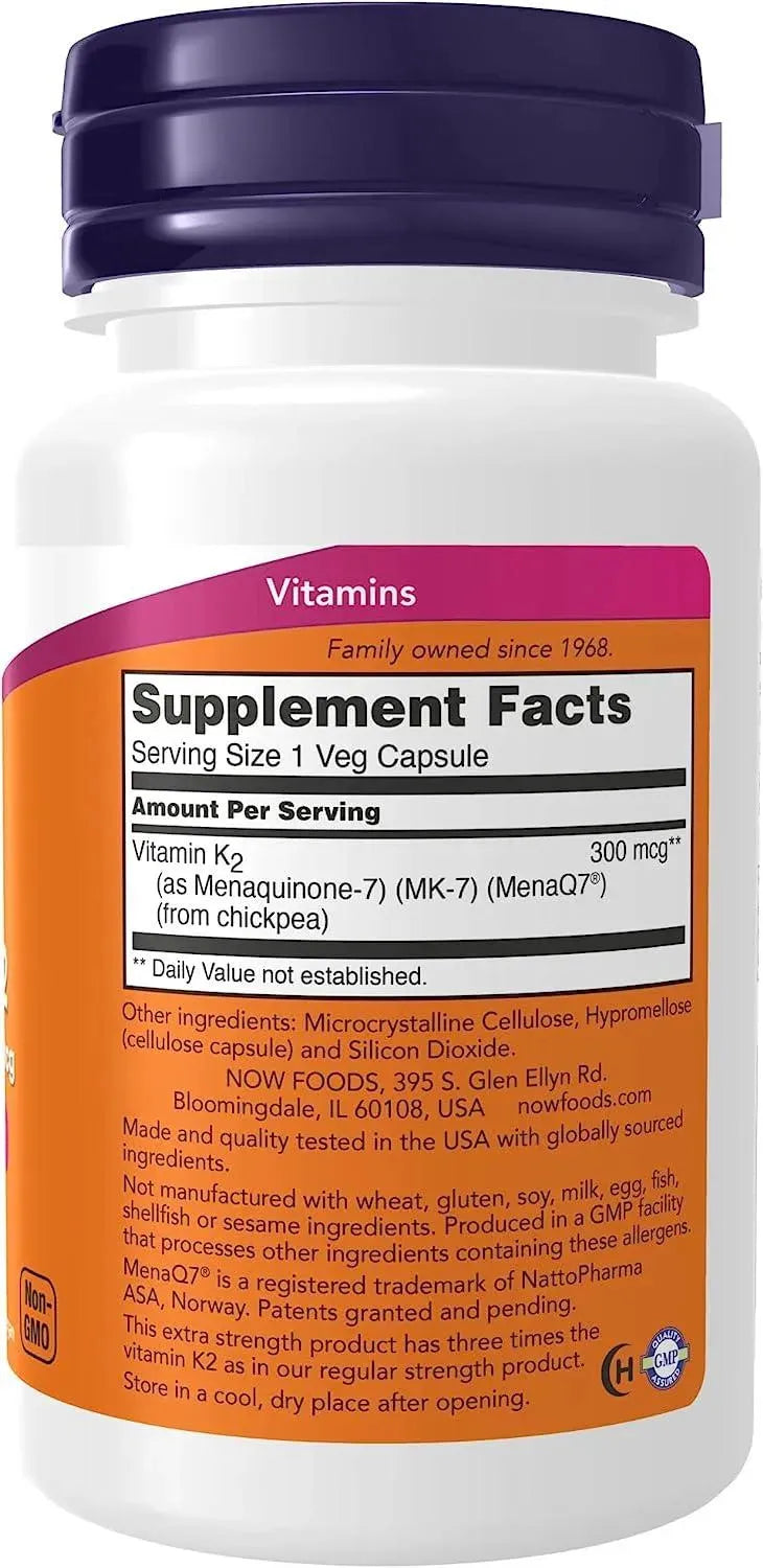 NOW Supplements Vitamin K2 (MK-7) 300mcg 60 Capsulas