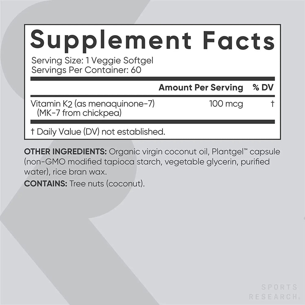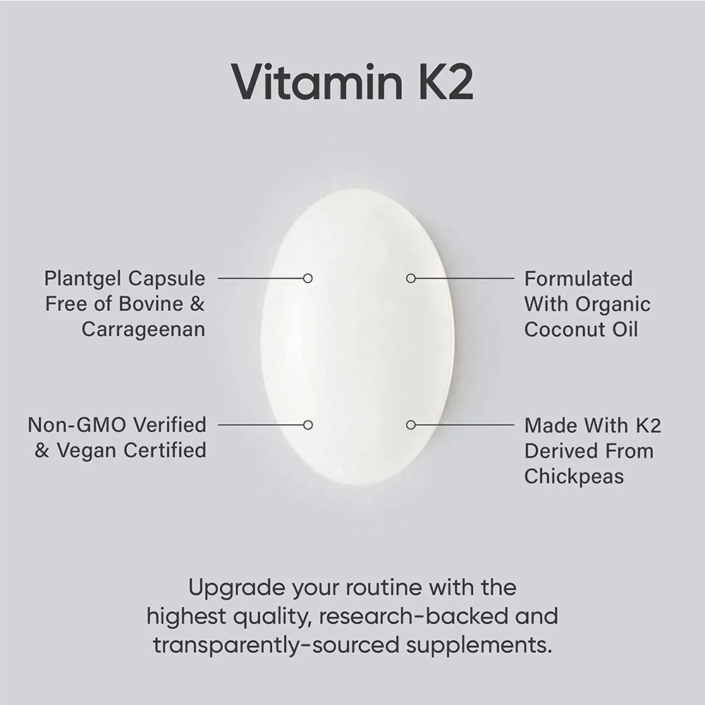 Beneficios La vitamina K2 como menaquinona-7 (MK7) es necesaria para transportar el calcio desde el torrente sanguíneo hasta los huesos, apoyando la densidad ósea y la salud cardiovascular.