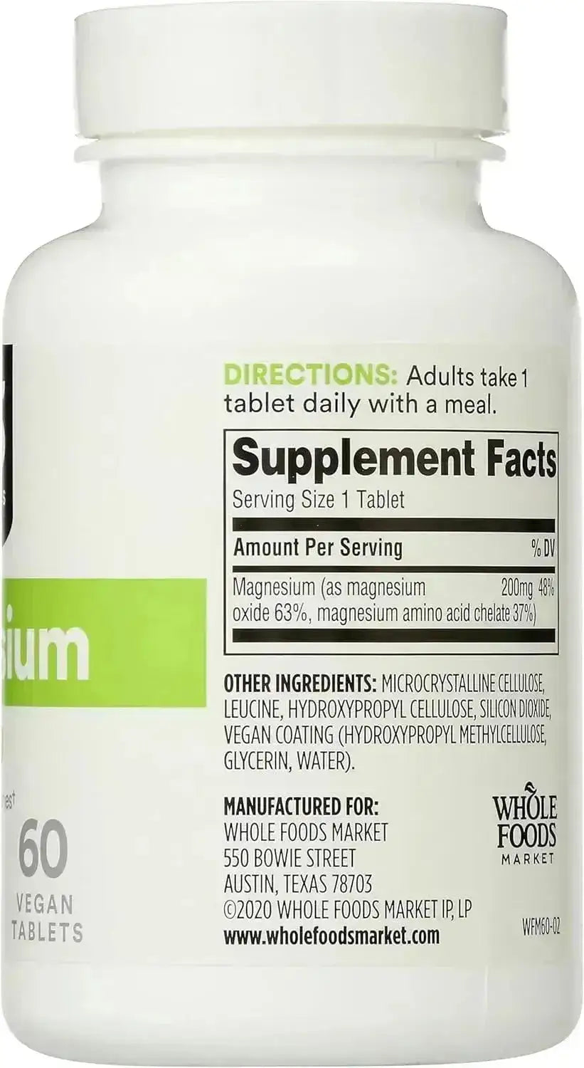 365 by Whole Foods Market Magnesium 200Mg. 60 Tabletas