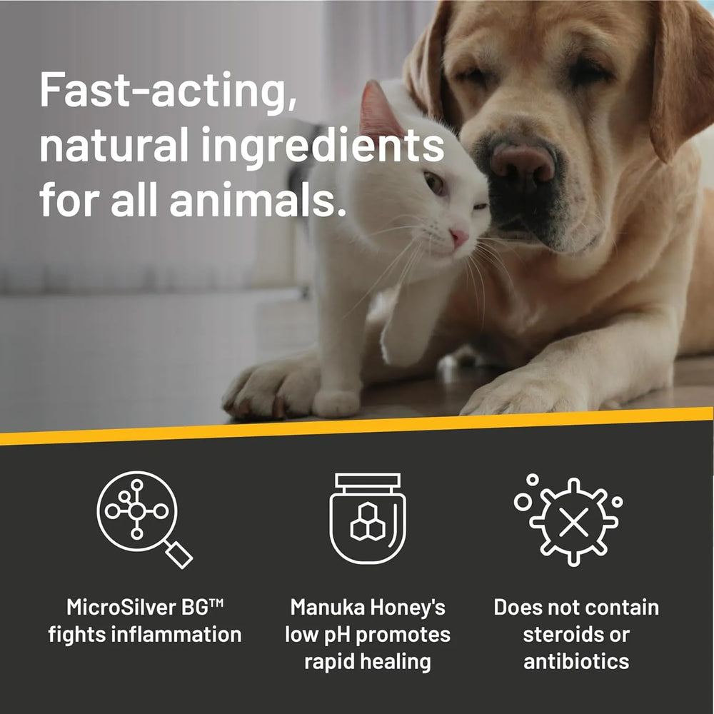 DESARROLLADO POR VETERINARIOS: Elaborado con los ingredientes más potentes de la Madre Naturaleza, MicroSilver BG y Miel de Manuka, ¡sin esteroides ni antibióticos!