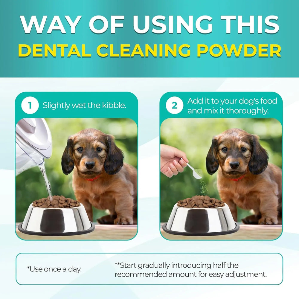 Ayude a sus perros con el sarro, la placa y las caries con nuestro Polvo Dental para Perros de 50 gramos. Previene las molestias dentales causadas por el movimiento de la cola.