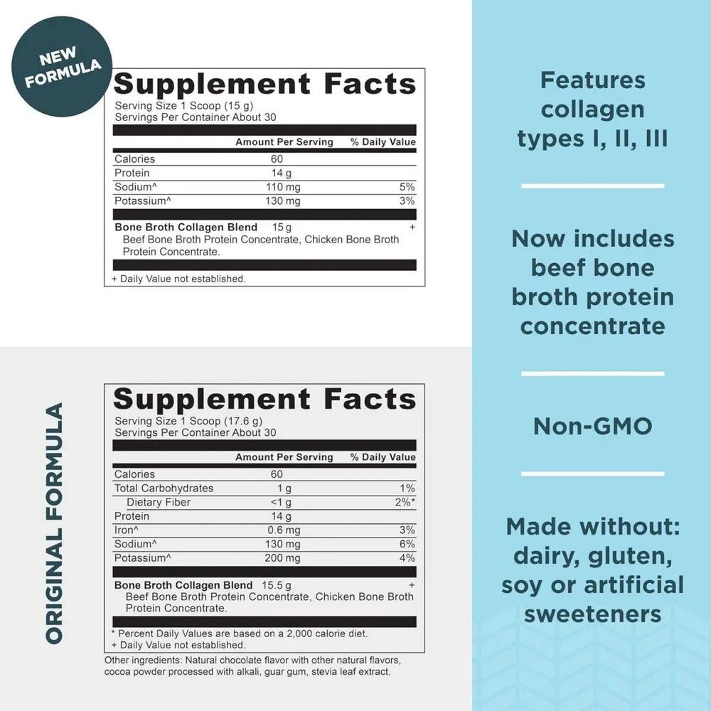 Lleno de nutrientes: ¡una porción proporciona 15 g de proteína y 50 calorías en cada cucharada! Mezcle fácil y suavemente batidos de proteínas, batidos, jugos y más para aumentar el colágeno, la gelatina, la glucosamina, la condroitina y los superalimentos que a menudo faltan en la dieta.