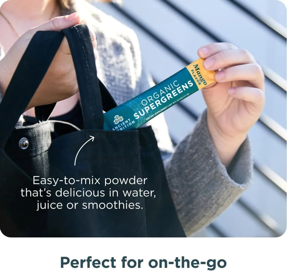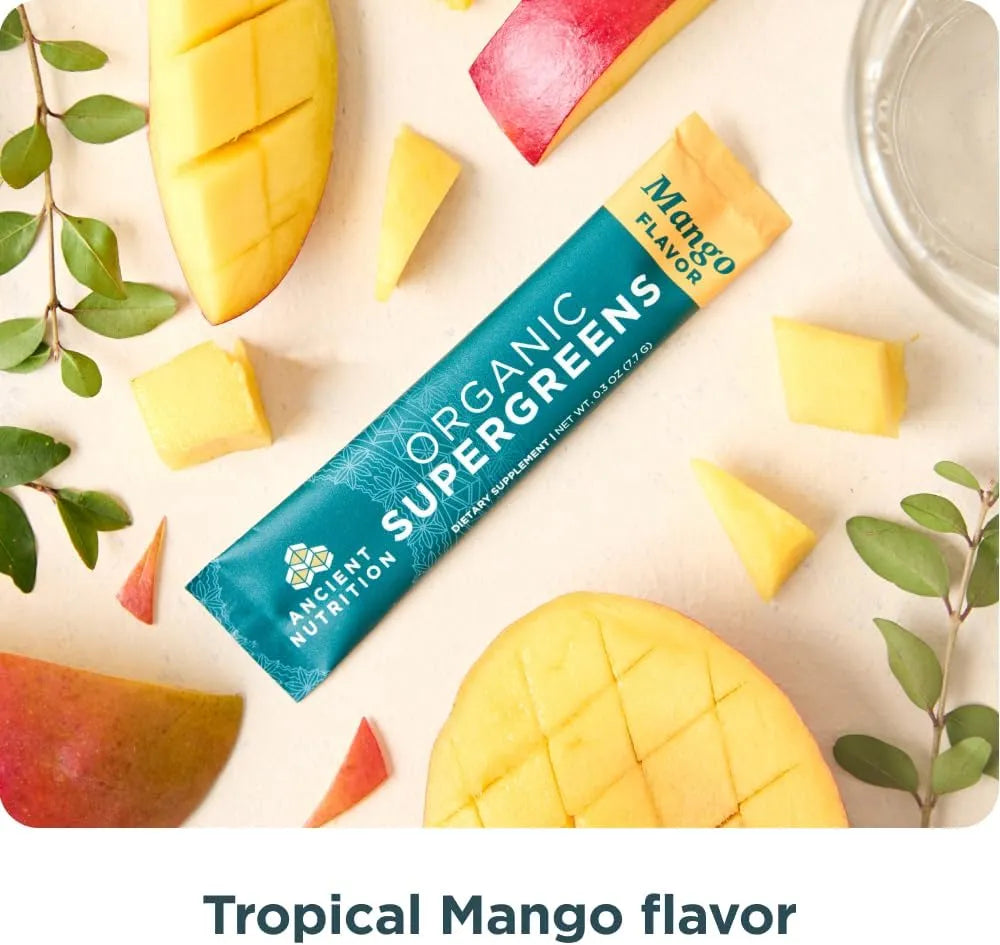 Ancient Nutrition SuperGreens Powder with Probiotics Organic Mango Flavor 16 Paquetes
