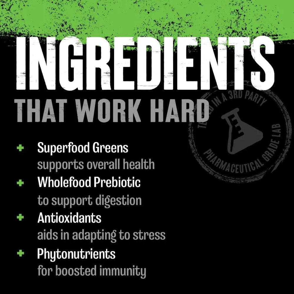 Sin polvos desagradables: Animal Daily Greens se entrega en un paquete de cápsulas y tabletas fácil de tragar, lo que elimina el regusto desagradable, el olor y la textura arenosa o herbácea asociados con los polvos verdes