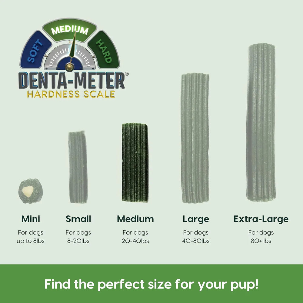 CUIDADO DENTAL PARA PERROS DE RAZAS MEDIANAS: ¡Tu perro lo considerará un premio! Nuestro masticable dental está formulado específicamente para perros de razas medianas, de 12 semanas de edad en adelante, con un peso de entre 9 y 18 kg. CUIDADOSAMENTE ELABORADO EN EE. UU.: Nuestra receta está formulada para brindar los resultados más efectivos. Nunca usamos maíz, soya, trigo ni ingredientes artificiales.