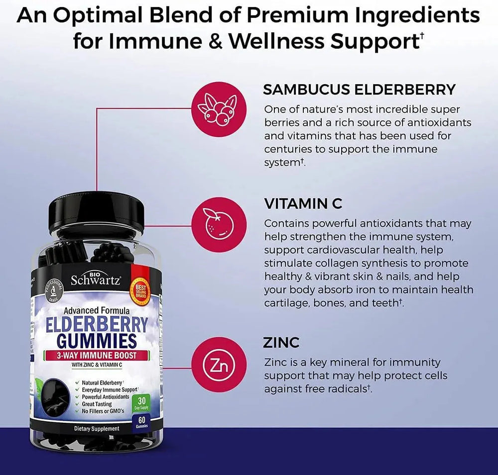 BioSchwartz Elderberry Gummies with Zinc and Vitamin C 60 Gomitas