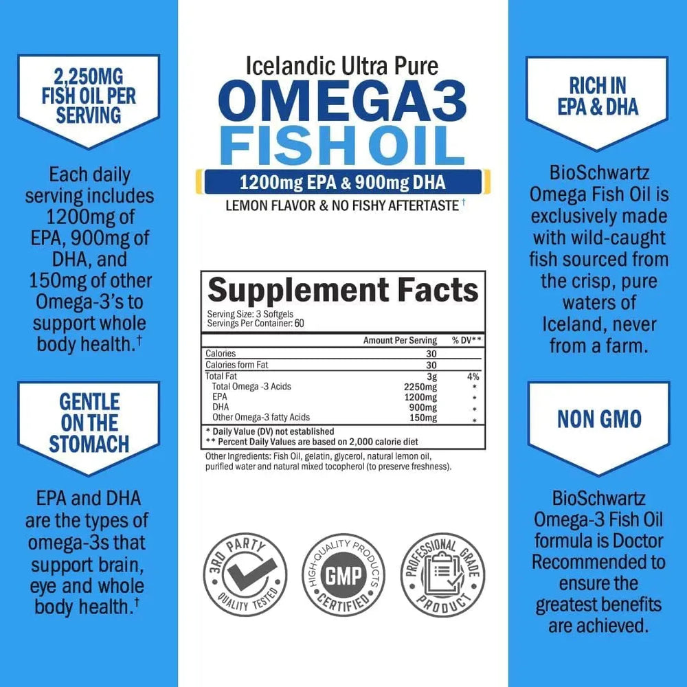 BioSchwartz Triple Strength Omega 3 Fish Oil 180 Capsulas Blandas
