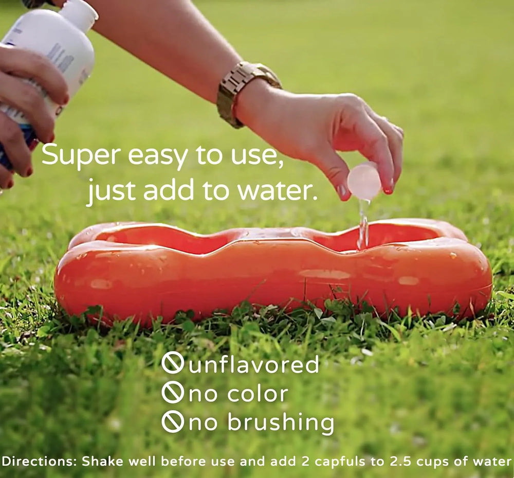 VUELVE A DISFRUTAR DE LOS BESOS DE TU MASCOTA: Aunque el cariño de tu mascota puede ser una de las alegrías de la vida, una mascota con mal aliento puede arruinarte el día. Con solo añadir nuestro aditivo refrescante para el aliento al agua de tu mascota, podrás disfrutar de sus besos en tan solo unos días. Dejando a un lado los besos, ¿sabías que el principal indicador de problemas dentales es el mal aliento? Nuestro aditivo para el agua no solo refresca el aliento, sino que también ayuda a combatir la placa y el sarro.