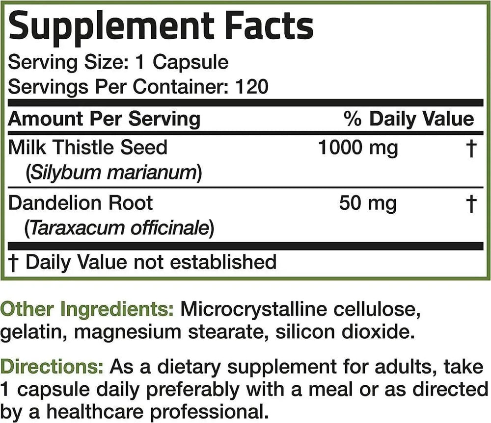 Alta potencia: cada cápsula contiene 1,000 mg de cardo mariano para brindar un soporte hepático de alta potencia y contiene 50 mg adicionales de raíz de diente de león para obtener beneficios adicionales