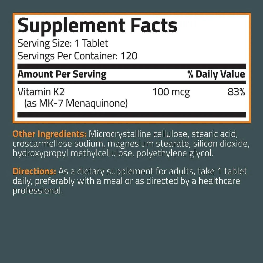 Alta calidad y gran valor: Bronson Basics Vitamin K proporciona 100 MCG de K2 premium como MK-7 por tableta. Nos esforzamos por apoyar su buena salud y bienestar a través de suplementos de alta calidad al mejor precio.