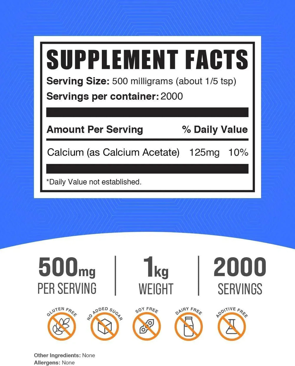 Bulk Supplements Calcium Acetate Powder 1 Kg.