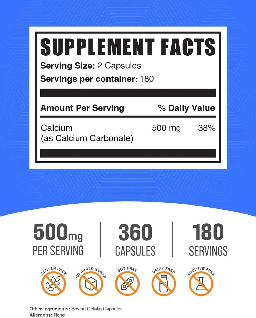 Bulk Supplements Calcium Carbonate 500Mg. 360 Capsulas