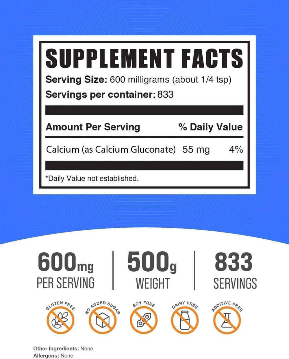 Bulk Supplements Calcium Gluconate Powder 500Gr.
