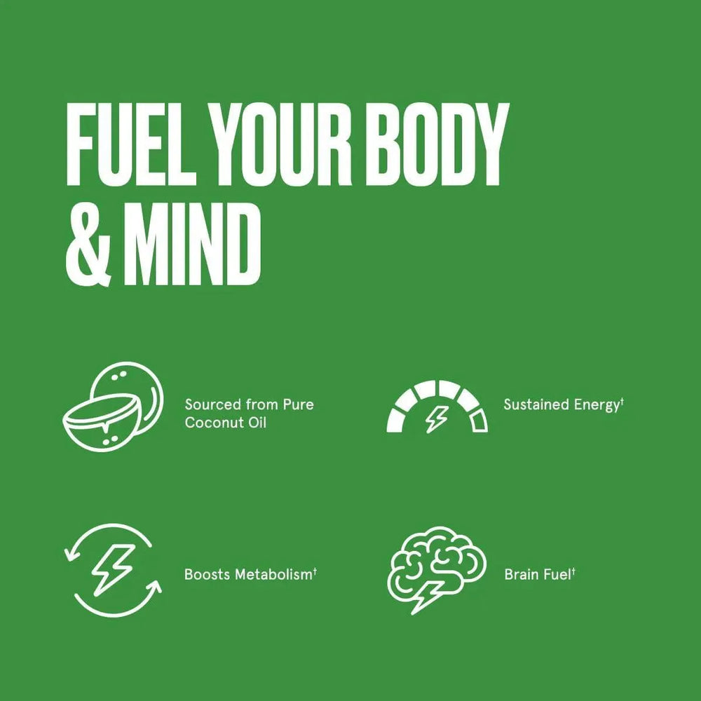 Elaborado 100% con aceite de coco, el aceite MCT se convierte rápidamente en cetonas para brindarle energía duradera.