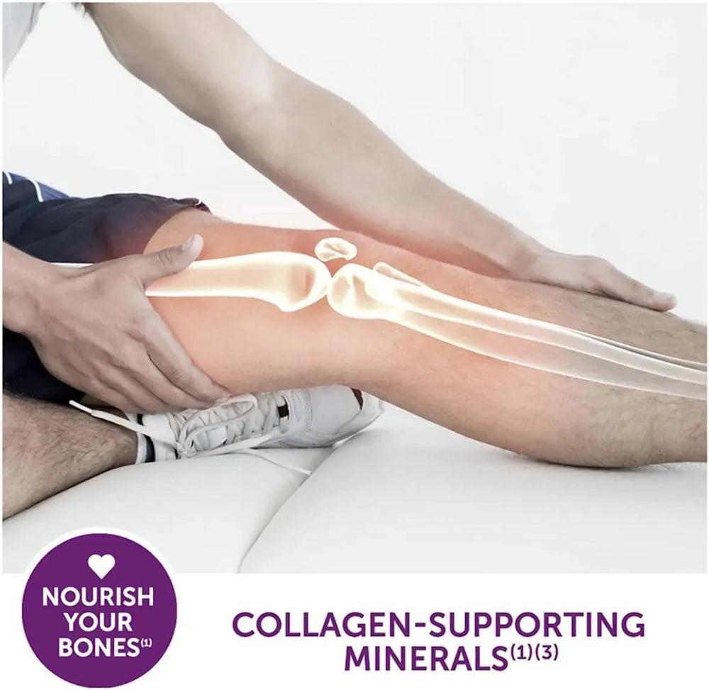 Suplementos óseos con minerales esenciales clave como zinc, cobre y manganeso para ayudar a respaldar la producción de colágeno y facilitar huesos más resistentes