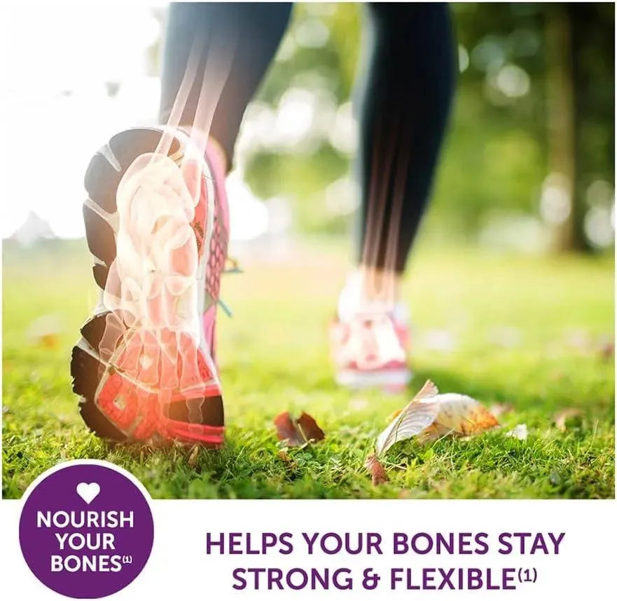 Los suplementos de soporte óseo de doble beneficio incluyen calcio y vitamina D3 para fortalecer los huesos y minerales para la flexibilidad.