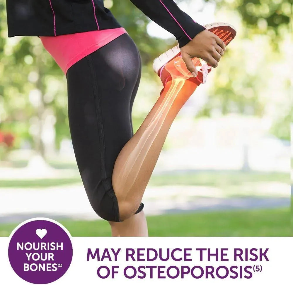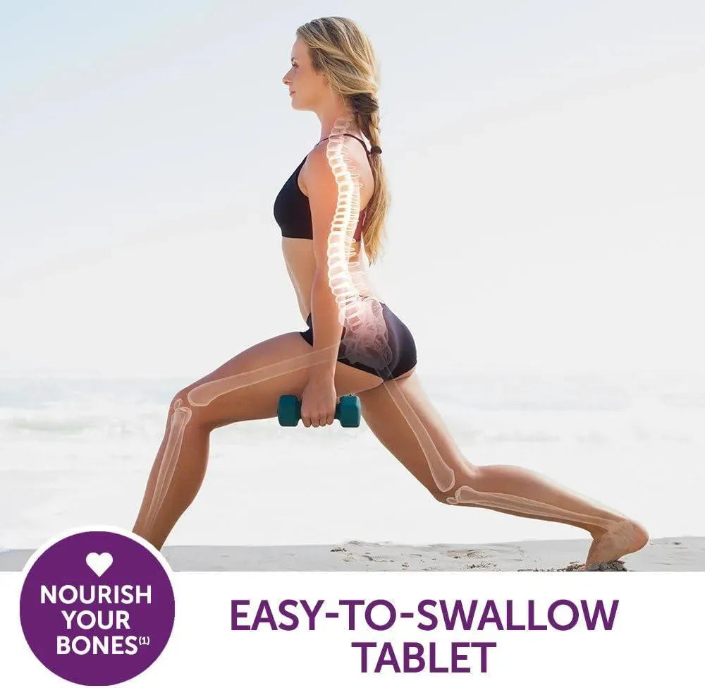Los suplementos de soporte óseo de doble beneficio incluyen calcio y vitamina D3 para fortalecer los huesos y minerales para la flexibilidad.