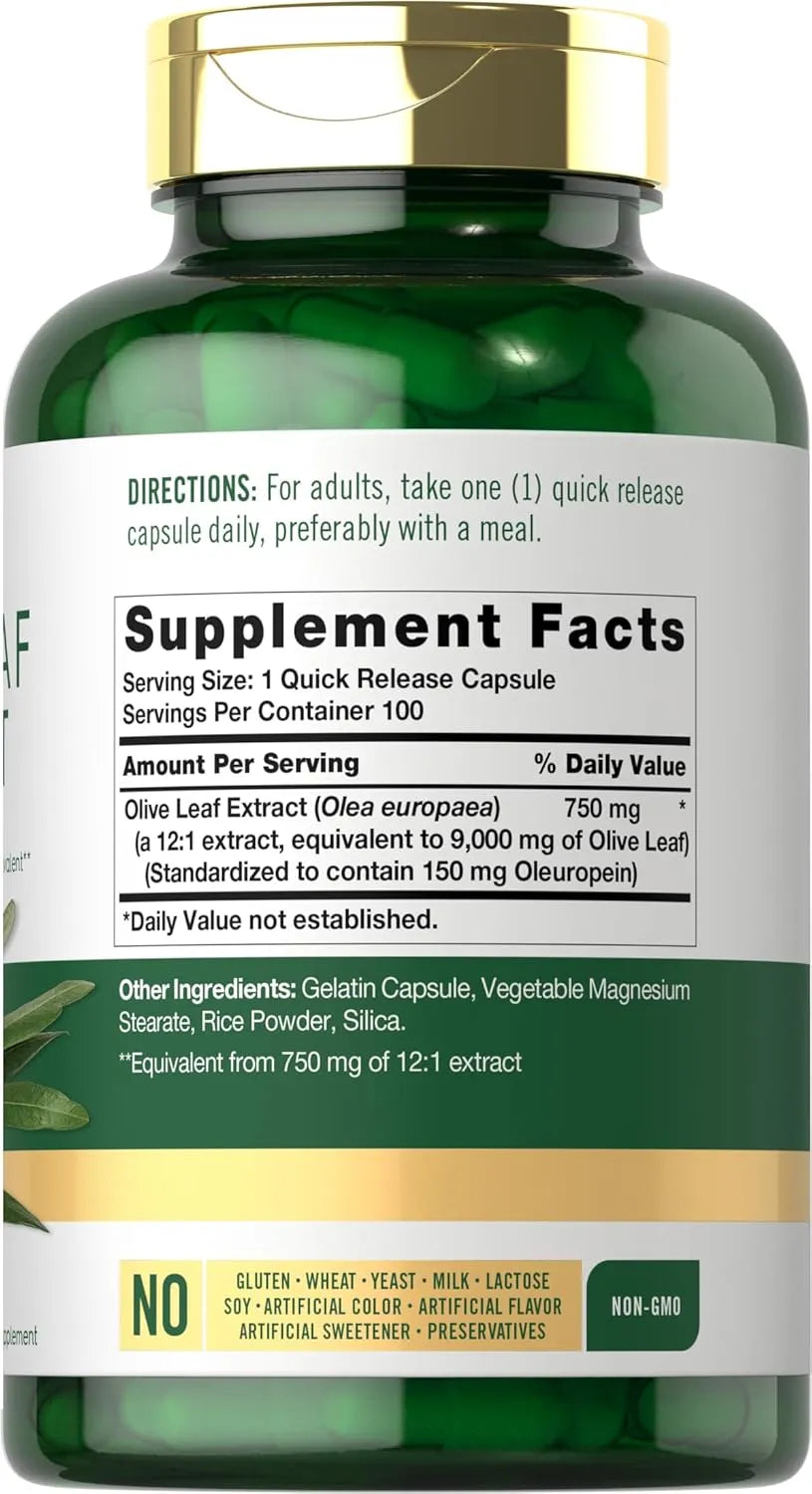 Carlyle Olive Leaf Extract 9,000Mg. 100 Capsulas
