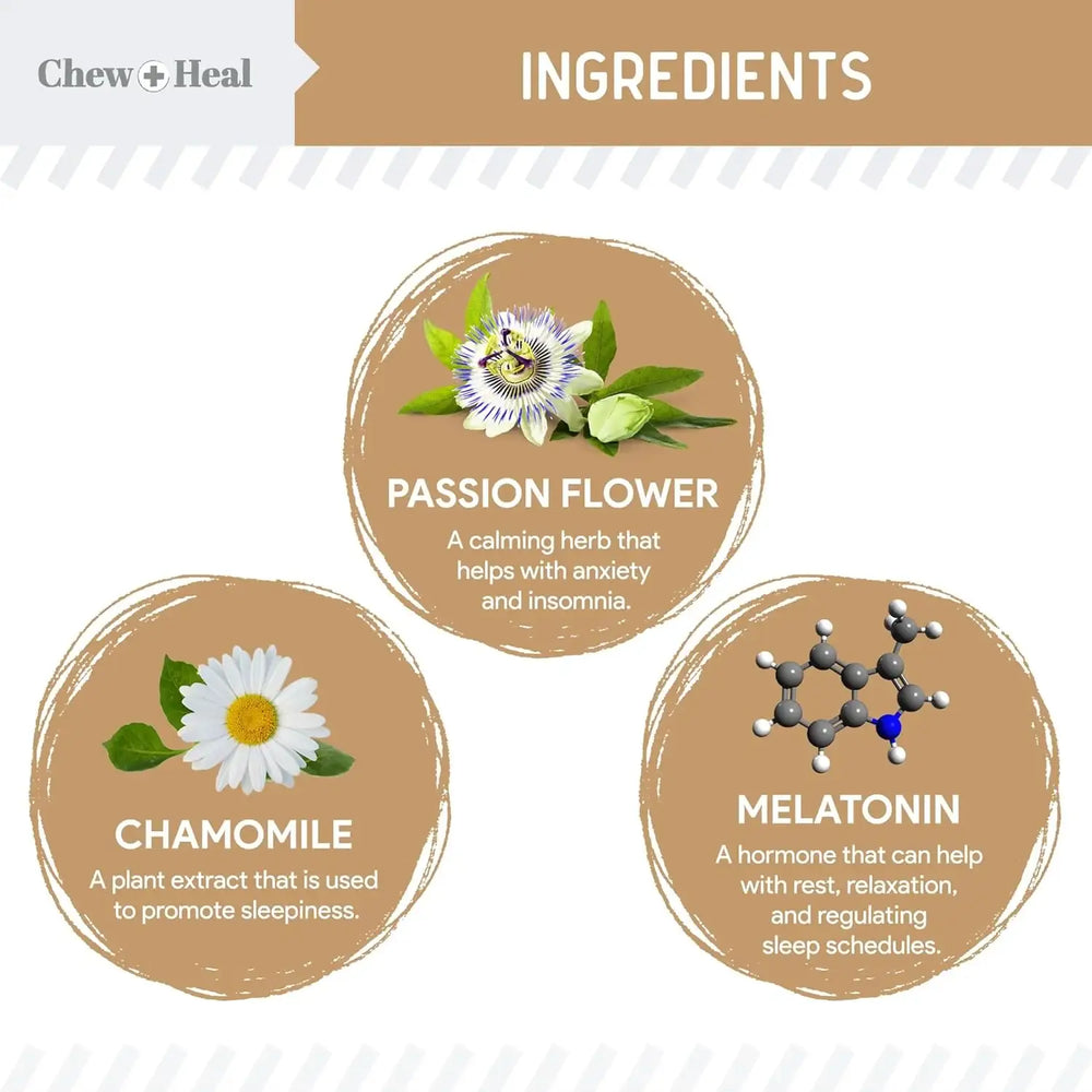 Promueve la relajación y el sueño: La melatonina para perros regula los ciclos de sueño y vigilia, promoviendo la relajación. La manzanilla y la pasiflora mejoran la somnolencia y reducen la tensión, lo que hace que estos premios calmantes sean efectivos.