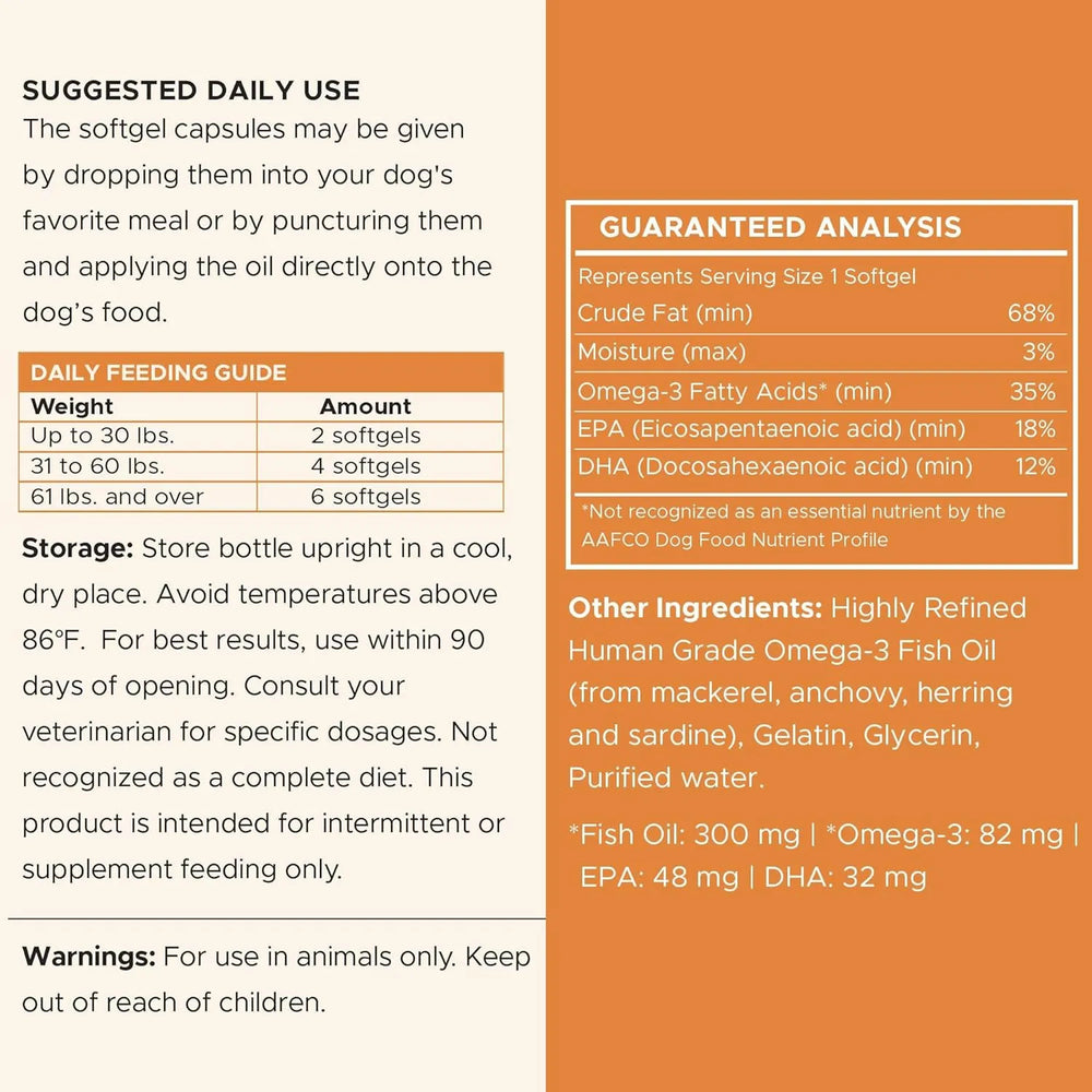 Estas mini cápsulas blandas de omega-3 contienen 300 mg de omega para perros pequeños y cachorros.