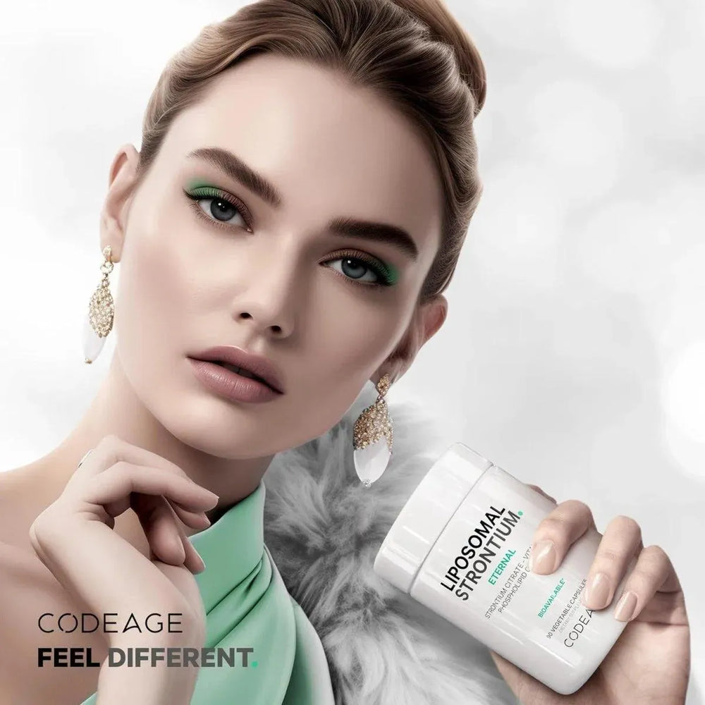 El suplemento Codeage Liposomal Strontium contiene estroncio, procedente del citrato de estroncio, una forma reconocida por su biodisponibilidad para ayudar a promover la salud ósea.