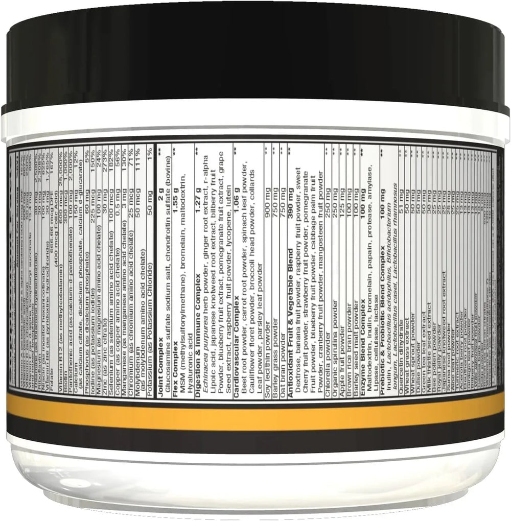 Dynamic Trio: nuestra fórmula especialmente formulada y poderosa contiene una gran cantidad de vitaminas, minerales y nutrientes esenciales para la recuperación muscular, ¡para que no te pierdas otro entrenamiento! Si se toma a diario, este multivitamínico dinámico actúa para apoyar la función articular, digestiva e inmunológica, ¡en una sola porción!