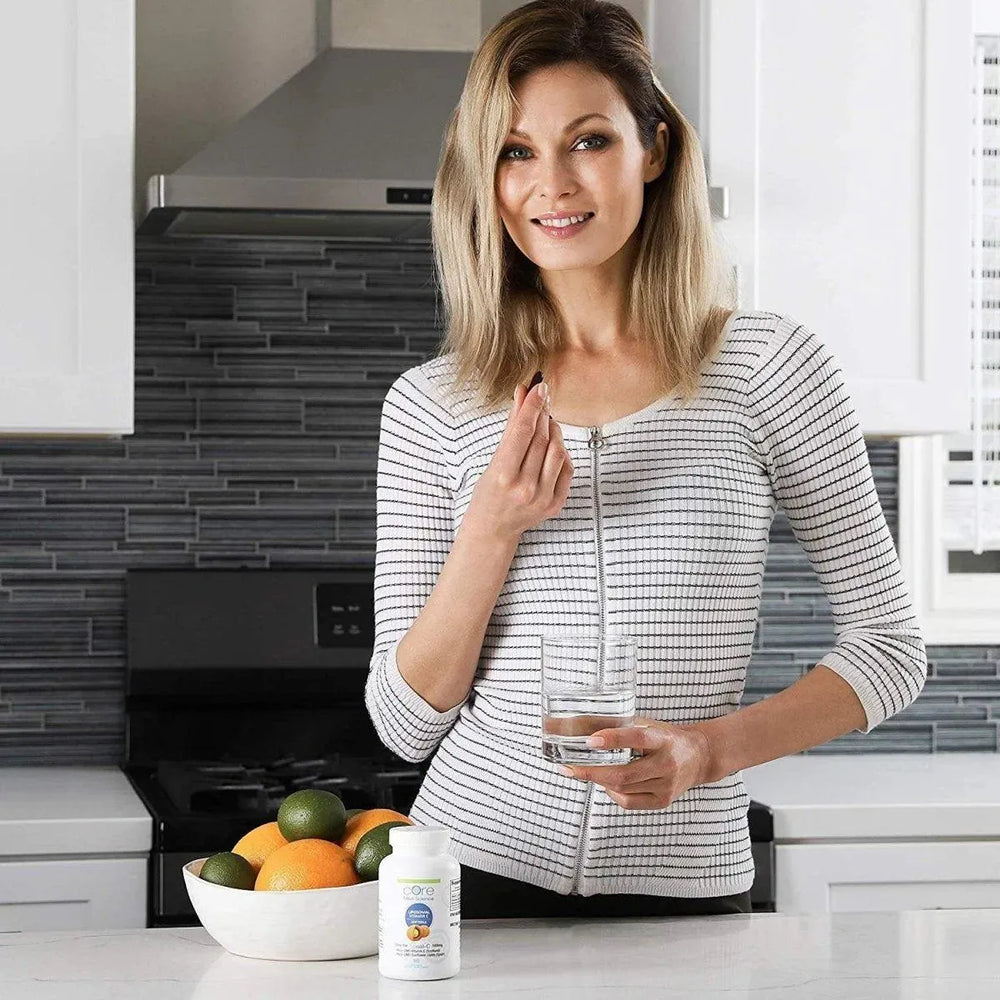 EL PODER DE LA VITAMINA C: Core Med Science La vitamina C puede favorecer la salud del corazón, los huesos y la piel. Sus beneficios pueden ayudar a acortar la duración de los resfriados, fortalecer y mejorar la elasticidad de la piel y ayudar a prevenir el daño celular, que puede causar envejecimiento prematuro. La vitamina C es necesaria en el proceso de producción de energía a partir de grasas y también puede ayudar a aumentar los niveles de energía.