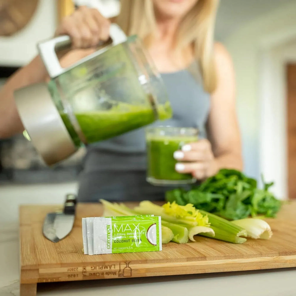 Coromega MAX High Concentrate Omega 3 Fish Oil 2400Mg. Coconut Bliss 30 Paquetes