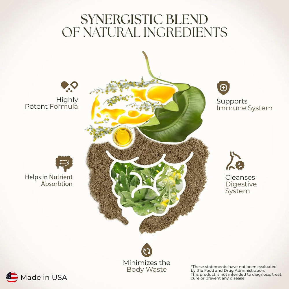 MEZCLA PODEROSA - La combinación herbal de quassia y ajenjo recién molido añade potencia adicional al suplemento, ayudando a limpiar el sistema digestivo y a mejorar la calidad de vida. Estos componentes se someten a un control de identidad para garantizar una alta eficacia.