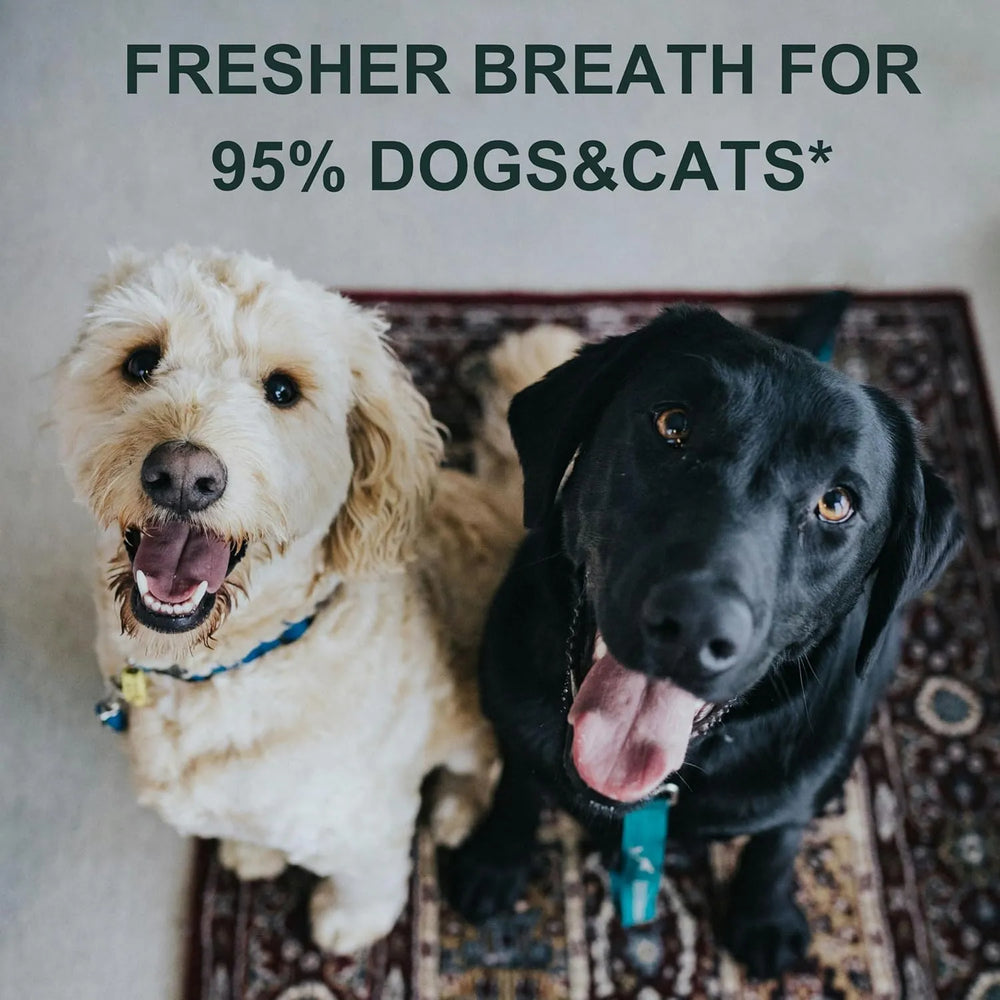 Fórmula natural y saludable: El polvo de zeolita natural atrae eficazmente los restos de comida de los dientes de tu mascota. Combinado con algas naturales y una mezcla probiótica patentada que se descompone con la saliva, promueve la digestión intestinal, manteniendo así el aliento fresco de tu perro o gato.