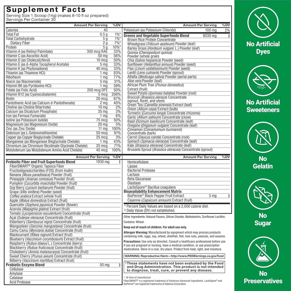 CON MÁS DE 40 SUPERALIMENTOS: Experimente una mejor energía y vitalidad con vitaminas y minerales esenciales de más de 40 ingredientes superalimenticios como col rizada, brócoli, espinaca, pasto de trigo, bayas, cúrcuma y más.