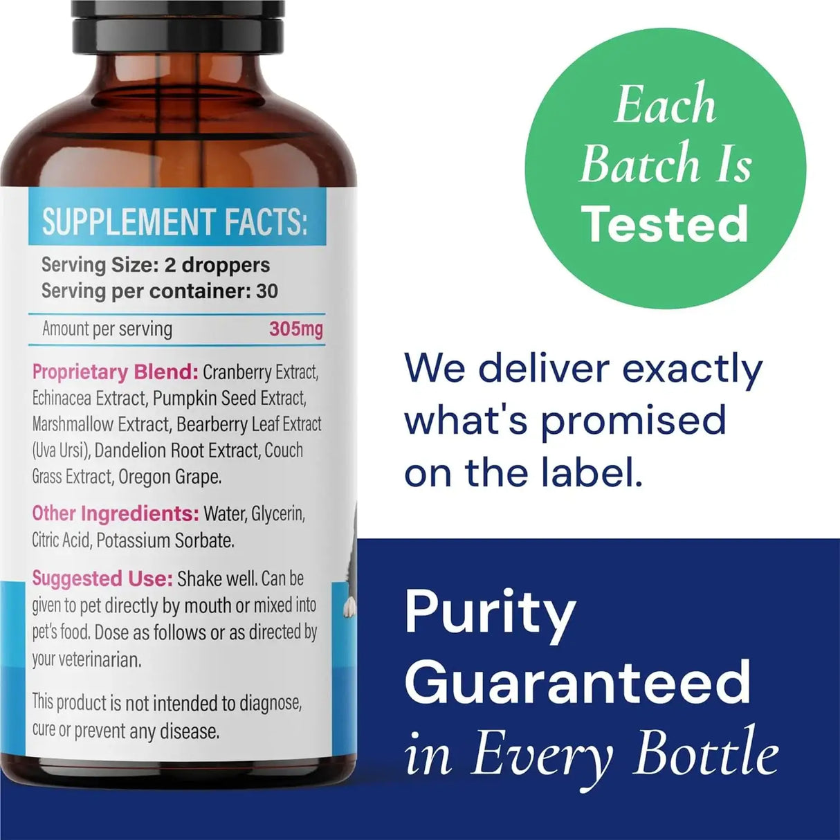 Fórmula potente para infecciones urinarias: Este tratamiento para infecciones urinarias en perros y gatos contiene extracto de arándano, malvavisco y raíz de diente de león. Estos ingredientes naturales ayudan a aliviar el tracto urinario y promueven la salud general de la vejiga.