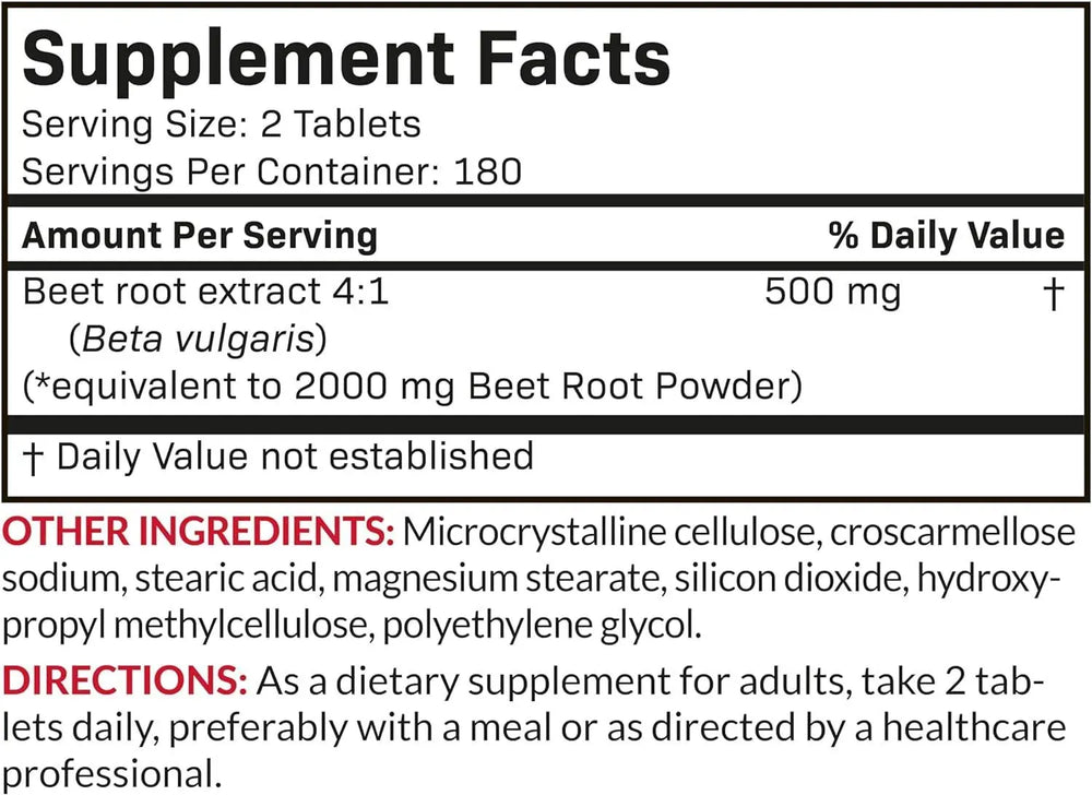 Fórmula extrafuerte: La raíz de remolacha de Futurebiotics proporciona el equivalente a 2000 mg de polvo de raíz de remolacha por porción (de 500 mg de extracto 4:1) para ayudar al cuerpo a mantener una circulación saludable y una resistencia general.* Las remolachas contienen naturalmente nitratos, que se ha demostrado que apoyan la función vascular. .